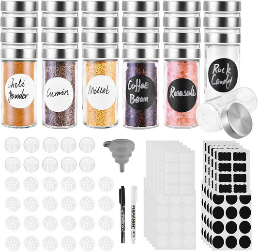 12 Round Spice Jars, 4 oz Seasoning Containers with Airtight Stainless Steel Caps and Shaker lids,Round Seasoning Containers and Spices Container Set.…