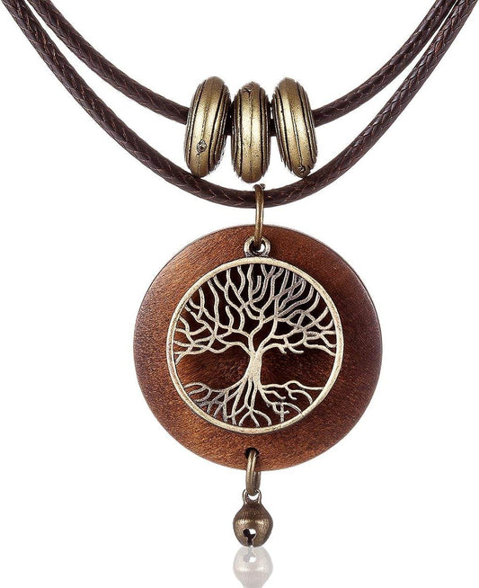Wooden Choker Chunky Pendant Necklaces