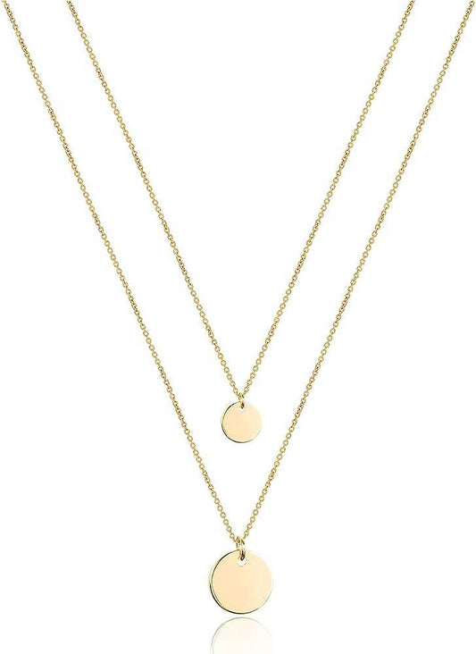 Turandoss Dainty Layered Choker Necklace, Handmade 14K Gold Plated Y Pendant Necklace Multilayer Bar Disc Necklace Adjustable Layering Choker Necklaces for Women