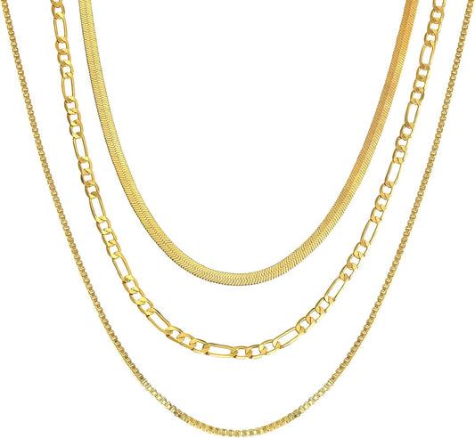 CHESKY 14K Gold/Silver Plated Snake Chain Necklace Herringbone Necklace Gold Choker Necklaces for Women Girl Gifts Jewelry 1.5/3/5MM(W) 14"/16"(L)