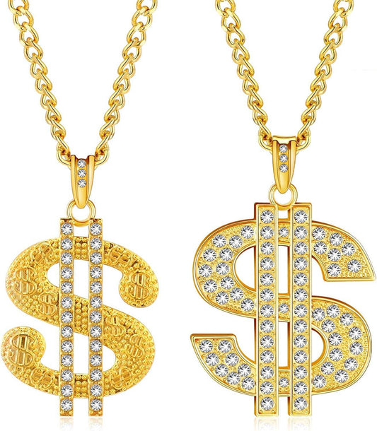 Tatuo 2 Pieces Plated Chain for Men with Dollar Sign Pendant Necklace, Hip Hop Dollar Necklace