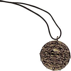 MASTER USA - COIN - Coin Necklace, Antique Gold Alloy Metal Medallion, Includes Black Nylon Neck Cord, Perfect for Cosplay, Pirates, Caribbean, Aztec, Skull, Fantasy - COIN, Small