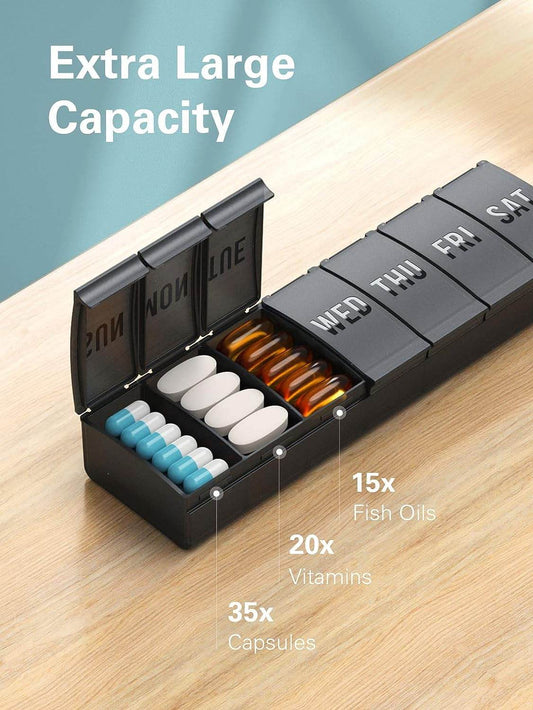 Large Pill Organizer - Weekly, Daily Vitamin Case Box - Large Capacity Compartments - 7 Day Pill Containers for Medicine & Supplements