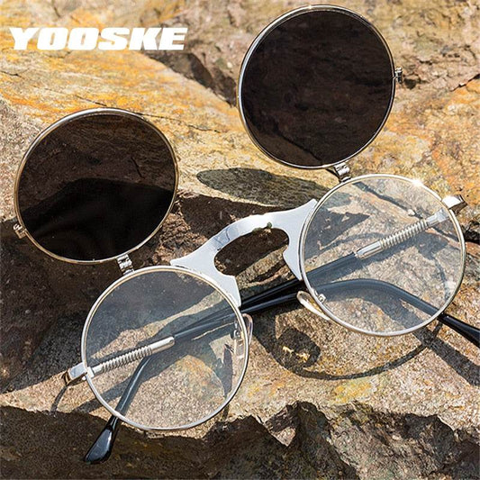 YOOSKE Steampunk Sunglasses Women Men Vintage Round Flip Sun Glasses Female Male Metal Hip Hop Eyeglasses UV400