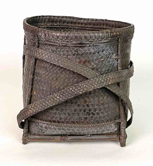 Vintage Short "Backpack" Style Vietnamese Rattan Rice Harvest BasketHeart