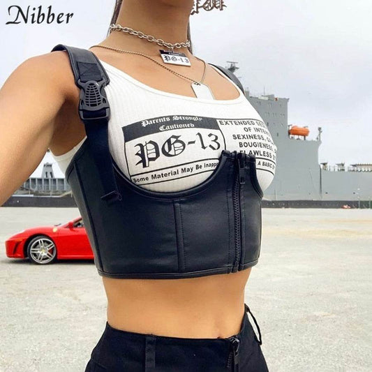 Darlingaga Street-wear Punk PU Leather Crop Top