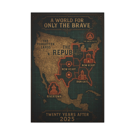 Artistic Wall Canvas Map - "A World for Only the Brave"