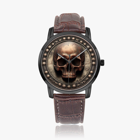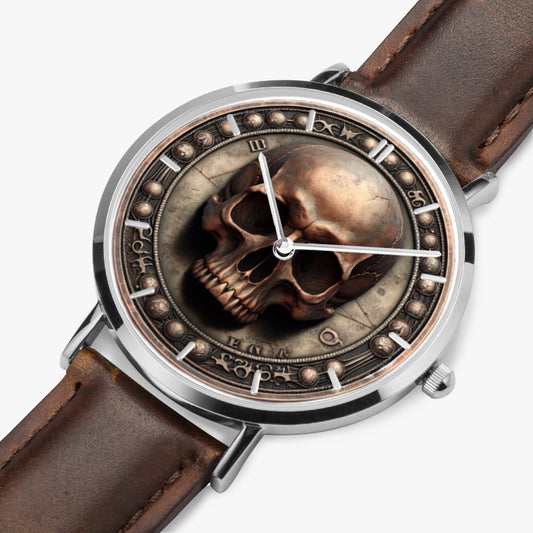 Ultra-Thin Leather Strap Quartz Watch -"Memento Mori" - Unisex