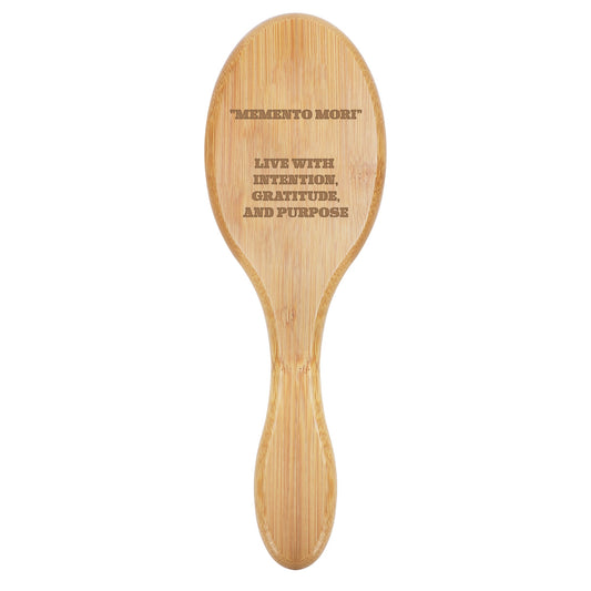 Engraved Bamboo Comb Natural Wooden Paddle Brush - "Memento Mori"
