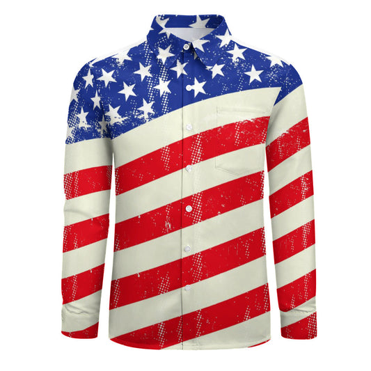 Peach Velvet Casual One Pocket Long Sleeve Shirt - "Americana"