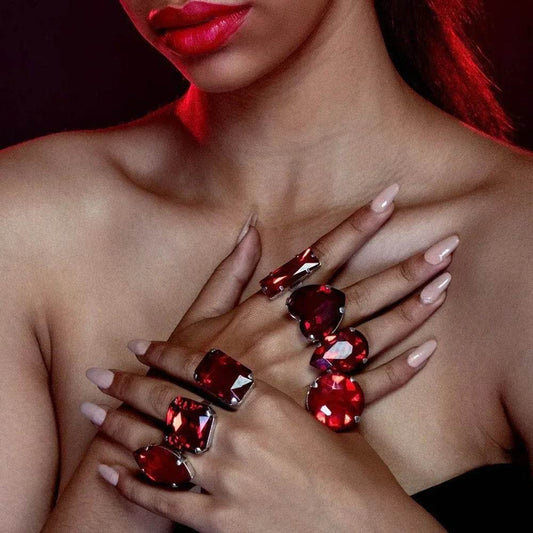 Exaggerated 7 PCS White Rhinestone Ring Set - Large Geometric Fashion Jewelry
