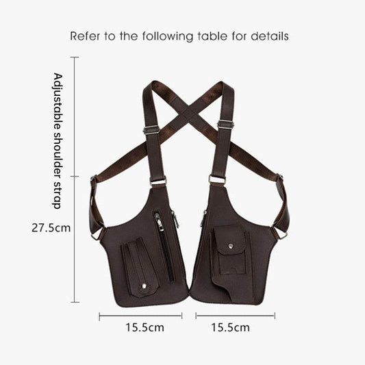 Double shoulder straps style leather harness bag