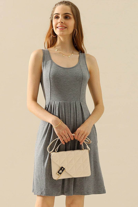 Doublju Full Size Round Neck Ruched Sleeveless Dress with Pockets