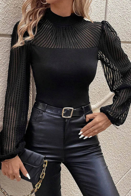 Cutout Printed Mock Neck Flounce Sleeve Blouse