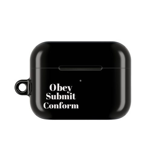 "Obey - Submit - Conform" AirPod Case - Stylish Black Accessory