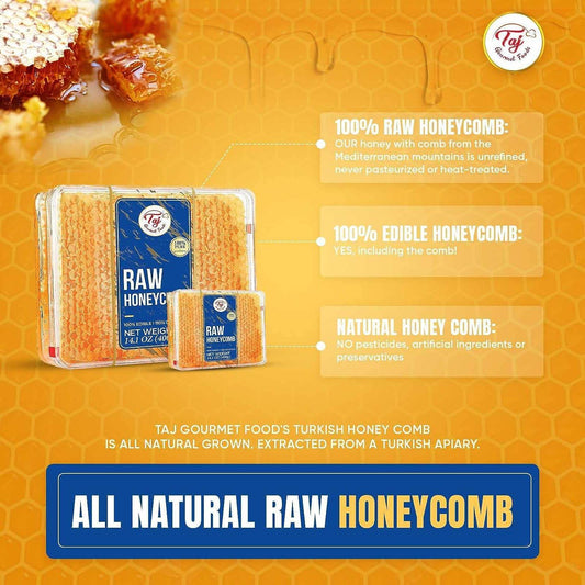 Gourmet All Natural Raw Honeycomb 100% Honey Pure Turkish Raw Honey Comb - 100% All Natural Edible Honey Combs Raw Edible - Perfect For Healthy Smoothies Honey With Honeycomb, 200g (7.05oz)