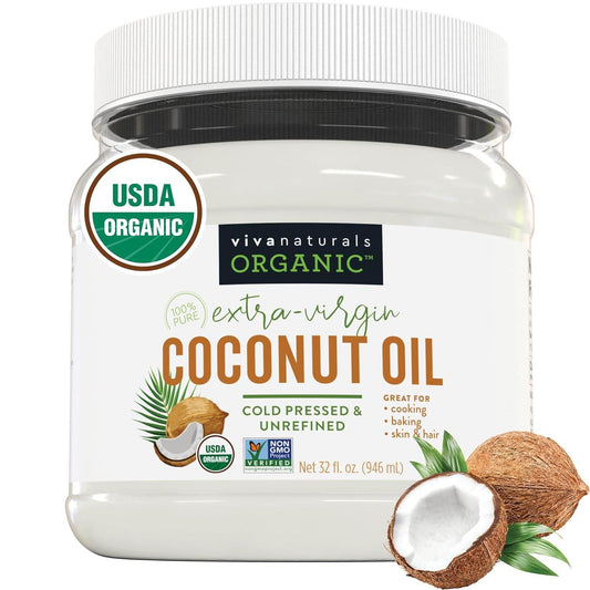Viva Naturals Organic Coconut Oil, Cold-Pressed - Natural Hair /Skin Oil and Cooking Oil with Fresh Flavor, Non-GMO Unrefined Extra Virgin(Aceite de Coco), USDA Organic, 16 oz