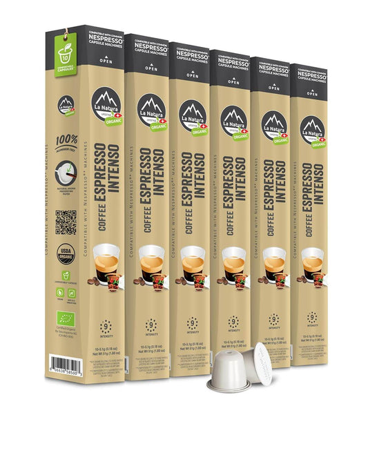 La Natura Organic Espresso Intenso Coffee Pods - Dark Roast Arabica Coffee Capsules for Nespresso Original Line Machines - Compostable Capsules, Aluminum-Free - Single-Serve Pods (10 Count)