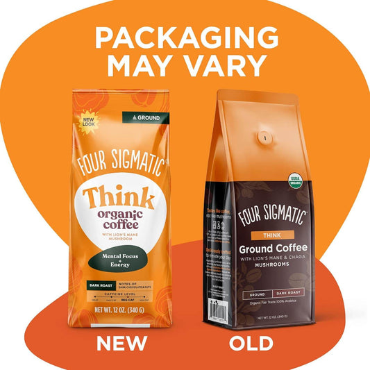 Organic Mushroom Ground Coffee by Four Sigmatic | Dark Roast, Fair Trade Gourmet Coffee with Lion's Mane, Chaga & Mushroom Powder | Immune Boosting Coffee for Focus & Immune Support | 12oz Bag