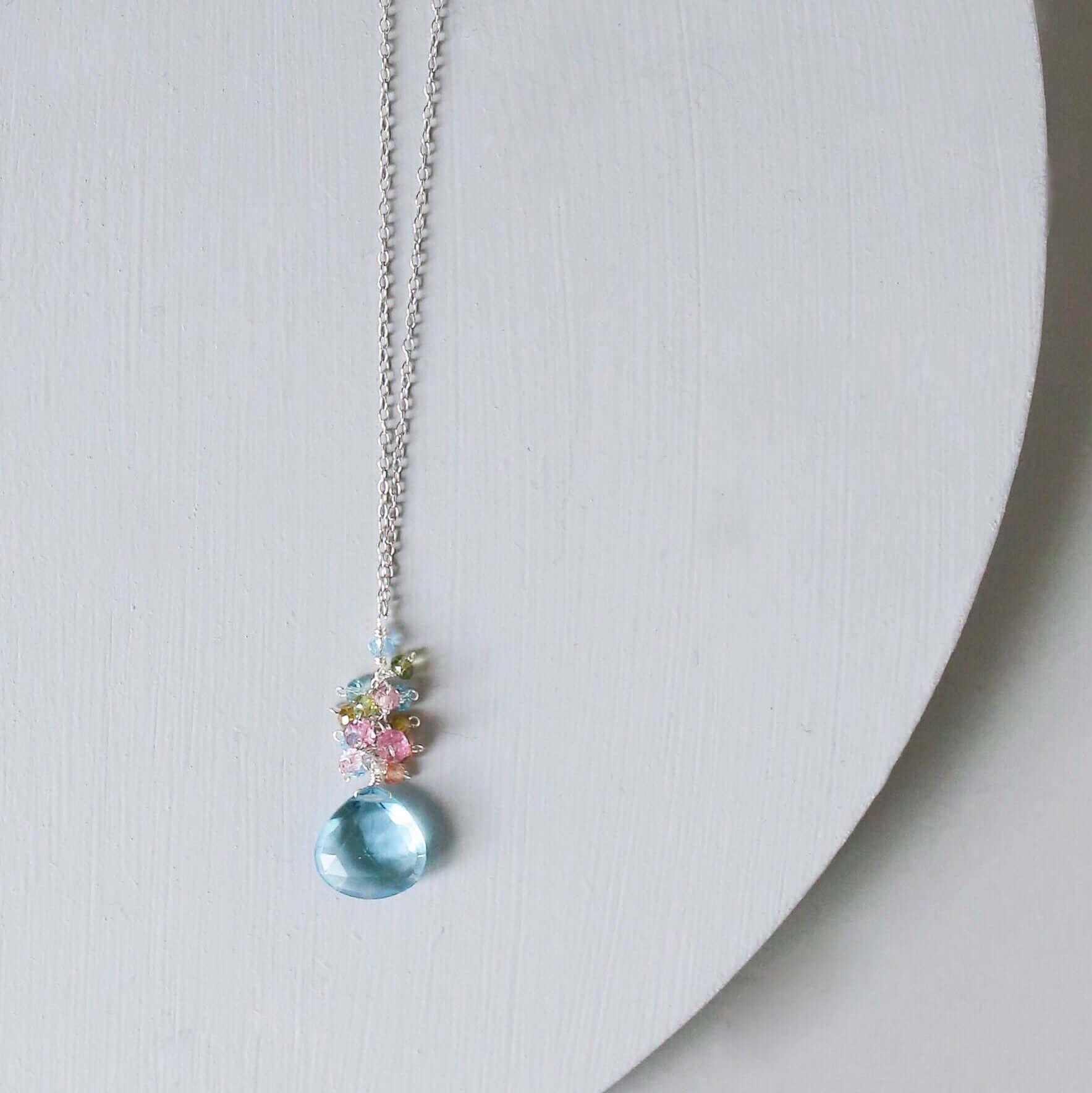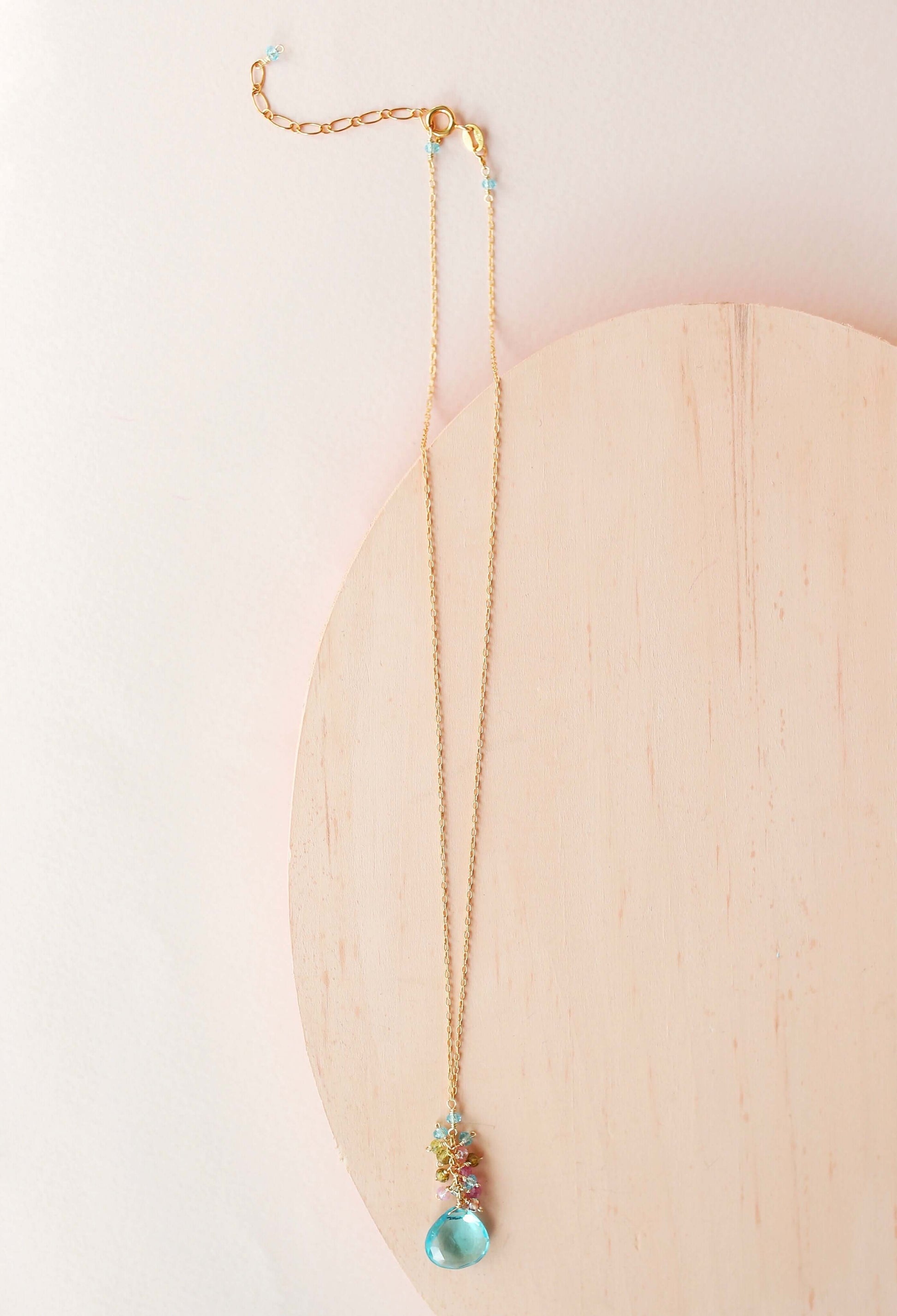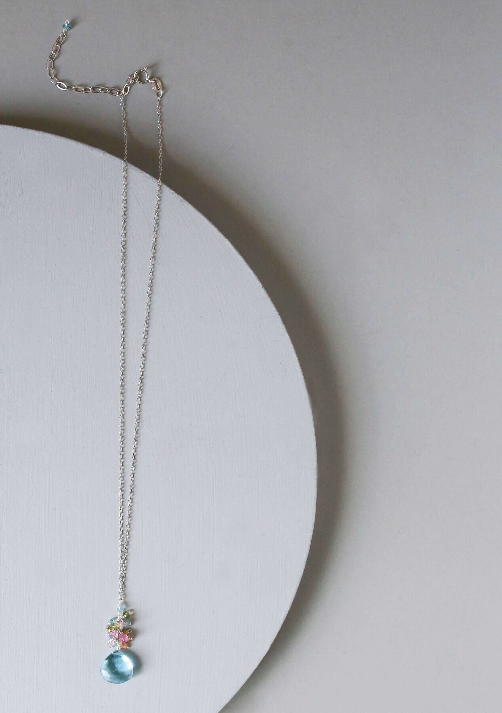 Our floating Aqua Blue Quartz "raindrop" pendants are absolute neck candy.