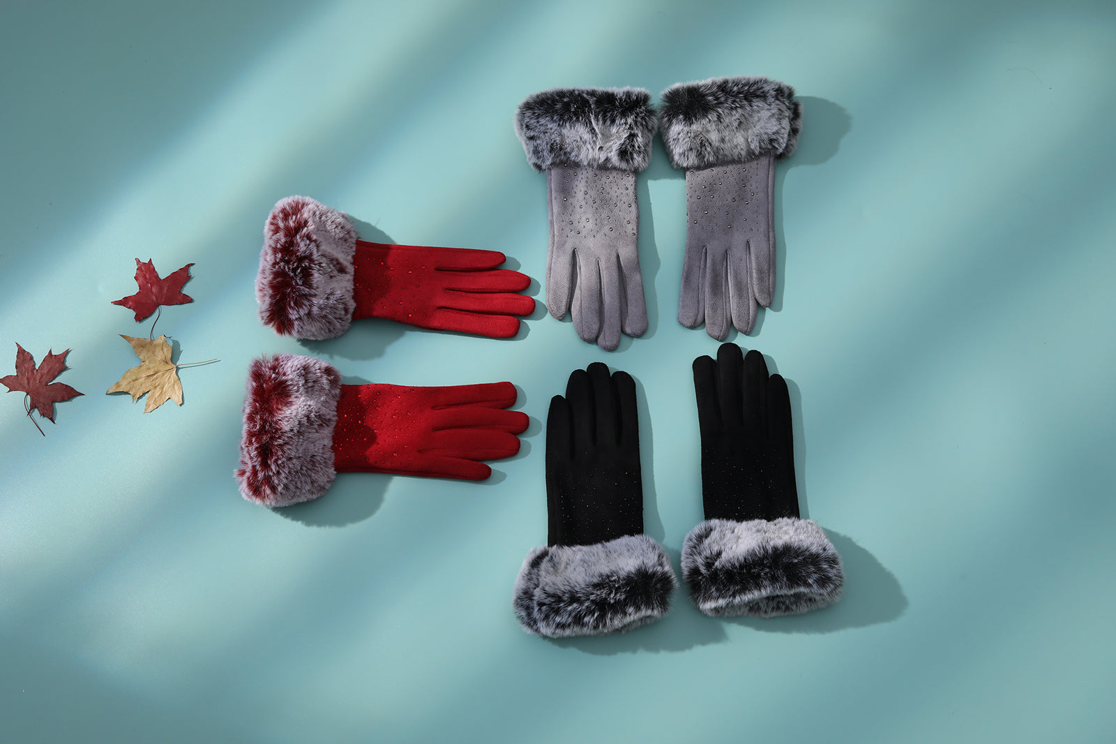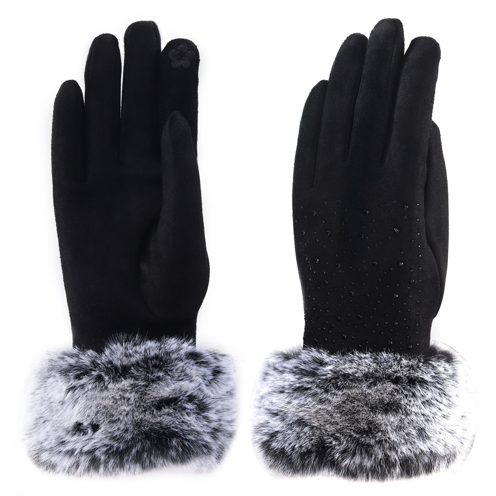 Classic glam is what our NEW Audrey gloves offer! Soft cotton bedazzled with matching rhinestones and coordinating faux fur are the perfect combination to complete your winter outfit. Style meets function with these gloves as they allow you to operate your mobile devices while worn!