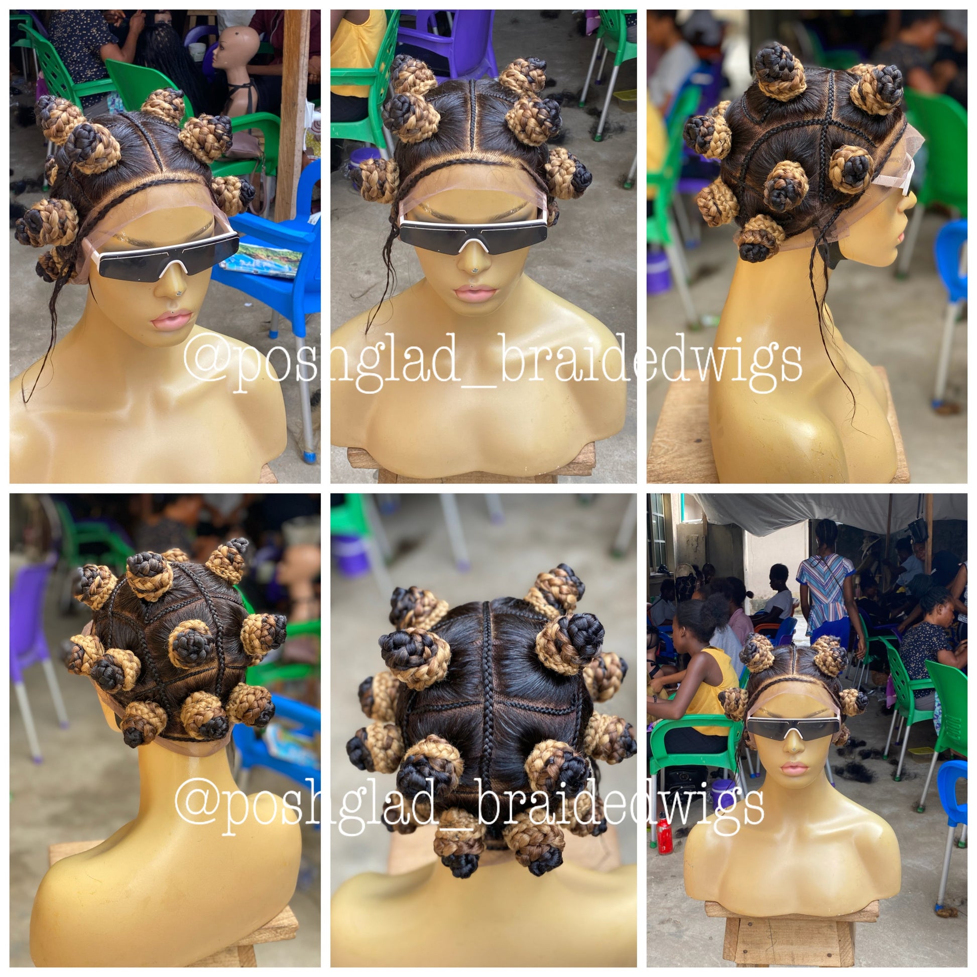 - Braids Type: Bantu knots / 100% Hand tied-braided wigs.