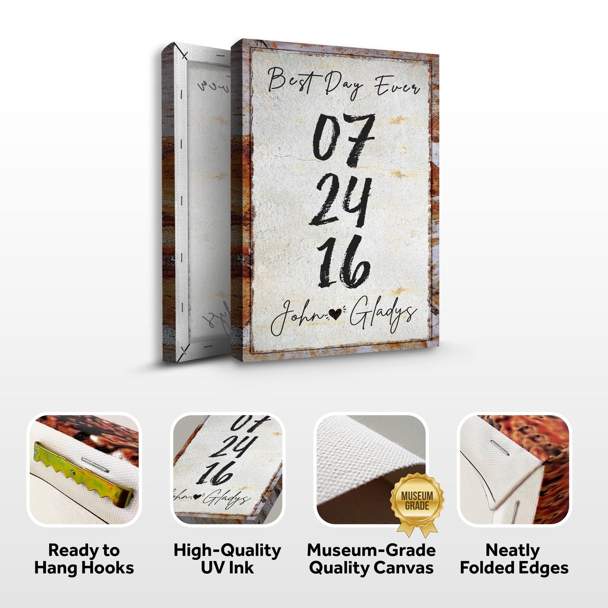 Best Day Ever sign with your wedding date will be a beautiful way to commemorate your wedding day. Best Day Ever wall art is the perfect addition to any home. Best Day Ever canvas wall art is the perfect way to show your love on your wedding day. Best Day Ever sign with Best Day Ever wall art will showcase your love on your wedding day and every day thereafter. Best Day Ever canvas wall art is an excellent way to show off your personalities as a couple and will add a touch of romance to any room. This Best Day Ever sign is ideal for commemorating this significant moment in your lives together. Best Day Ever canvas wall art is a must-have for any couple in love.