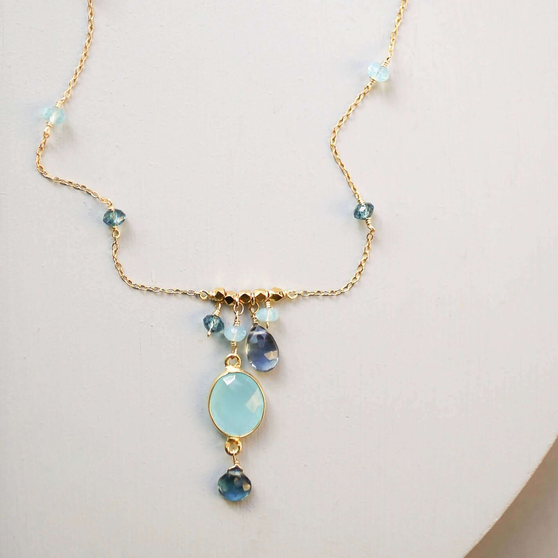 Handmade to last. Our unique gold plating technique makes our jewelry tarnish resistant. The nature of natural gemstones makes each style one-of-a-kind.