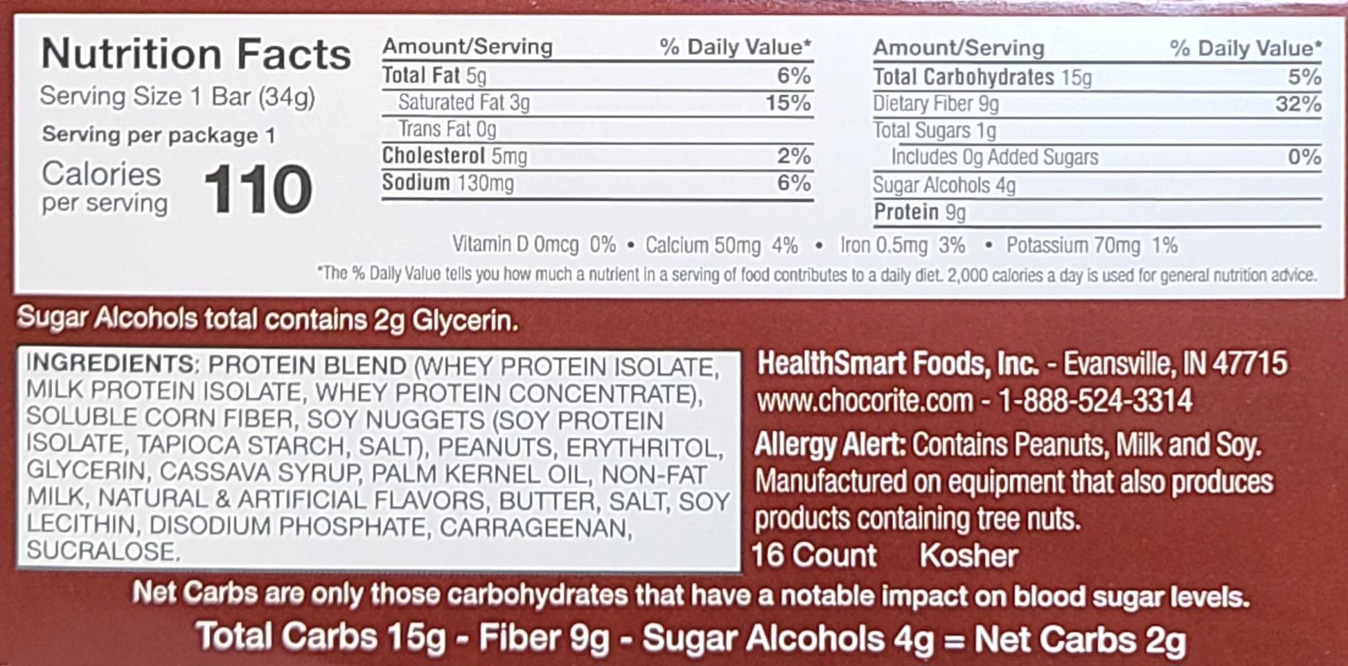 Chocorite Peanut Butter Bar Nutrition Facts and Ingredients