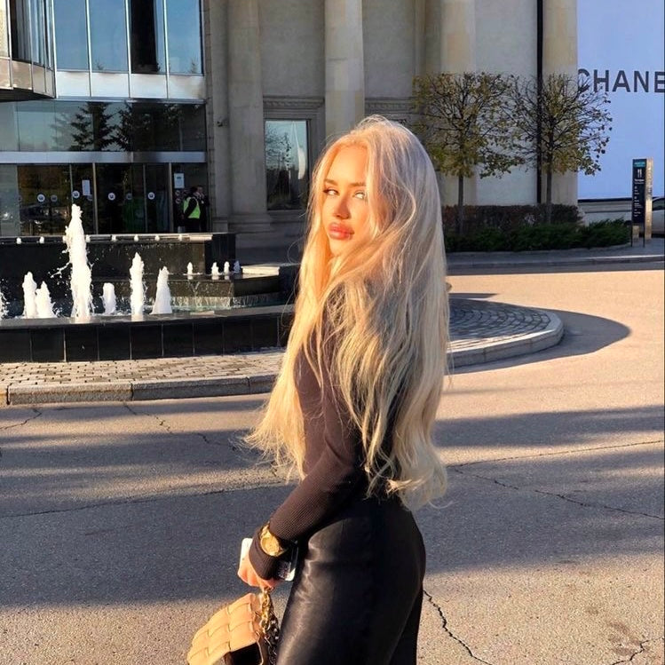 Our JB Bebe in Double Weft Hair 3 pcs?Full Head 24 Inch light blonde?ombre extensions set.?