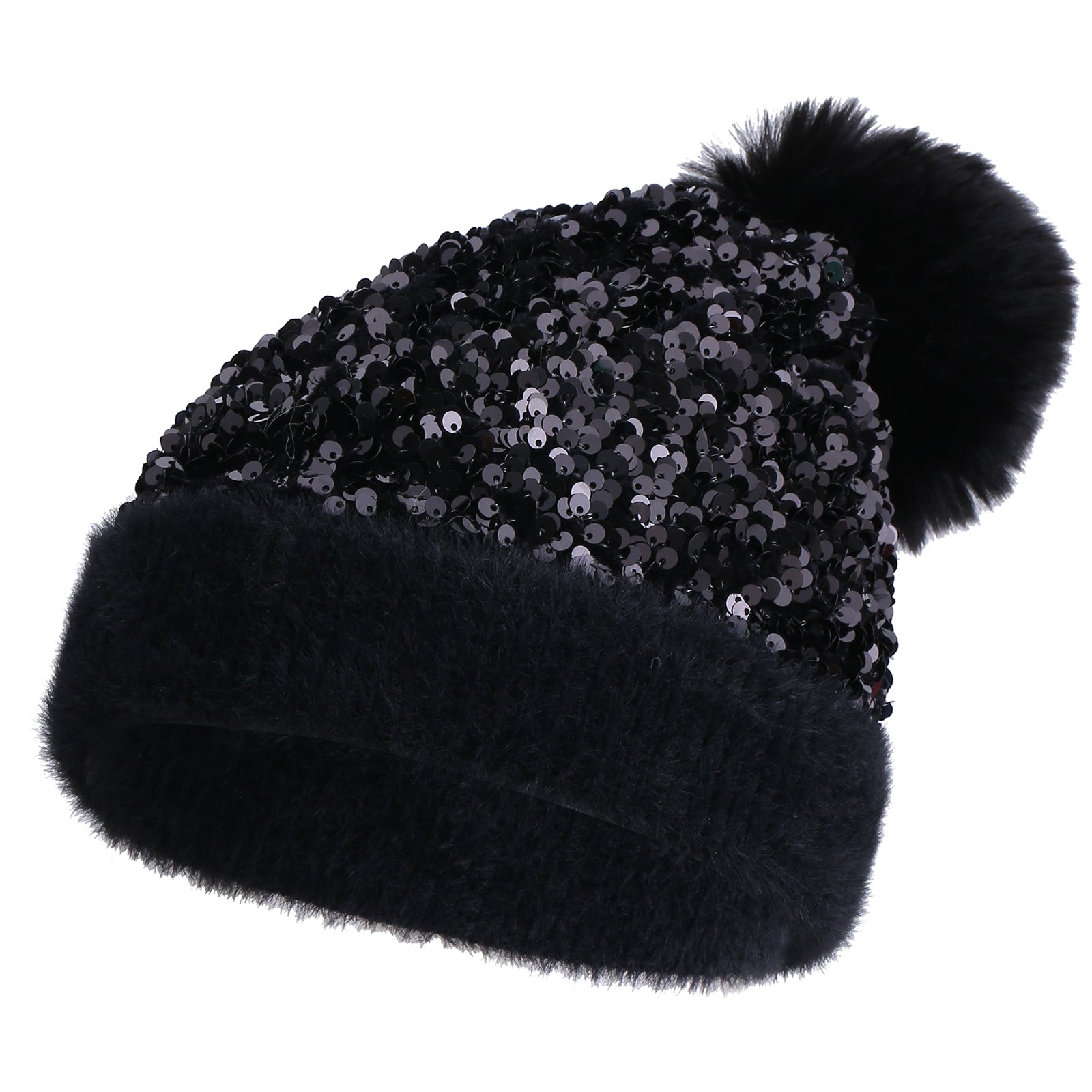Inspired by our popular Gemma Bucket Hat, Gemma Snow is the perfect fun and flirty NEW beanie! Made with a full array of fluttery sequins edged in super soft faux fur and topped with an equally soft faux fur pom-pom, our Gemma Snow beanie is the perfect on the go cold weather chic accessory! This exquisite design is embellished with sequins and fur, combining casual and statement into the perfect beanie.