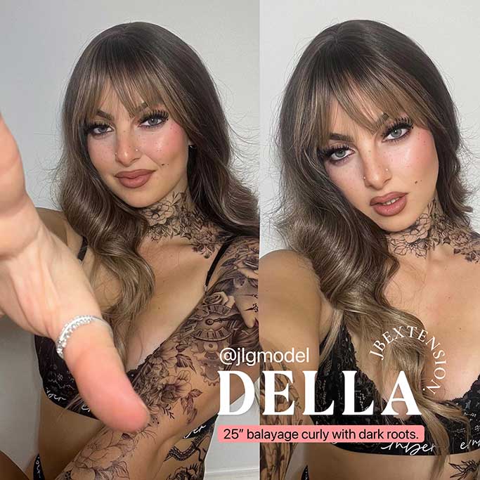 JBEXTENSION 25 Inches Balayage With Dark Root Curly Wig With Bangs DELLA