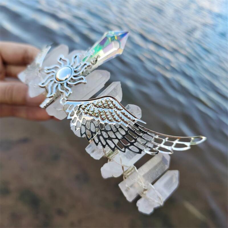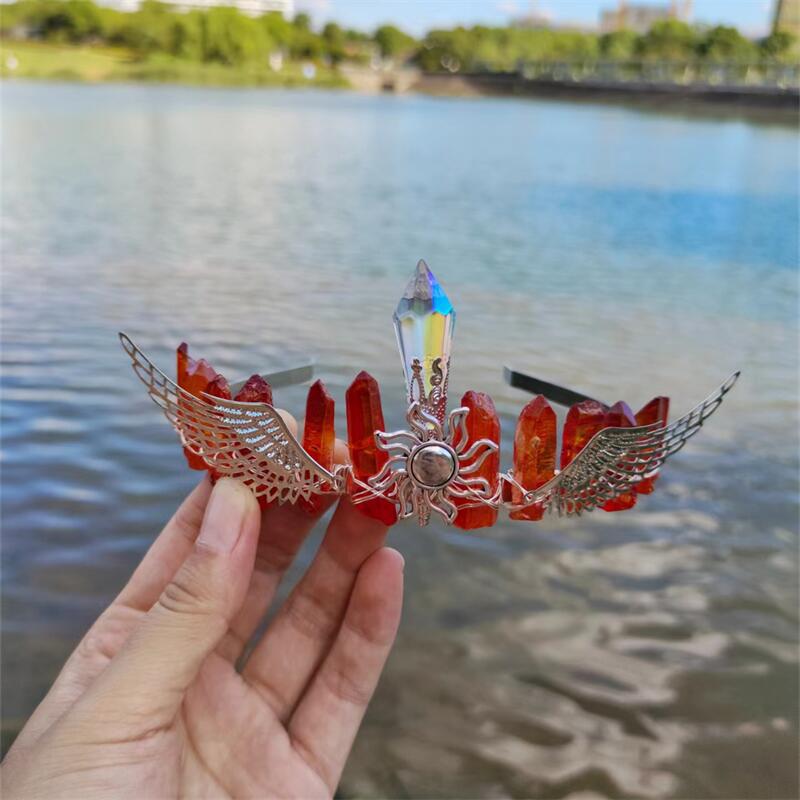 Handmade Natural Electroplated Colorful Crystal Golden Wings Mid-South Column Crystal Hair Accessories European and American Bride Crystal Headband