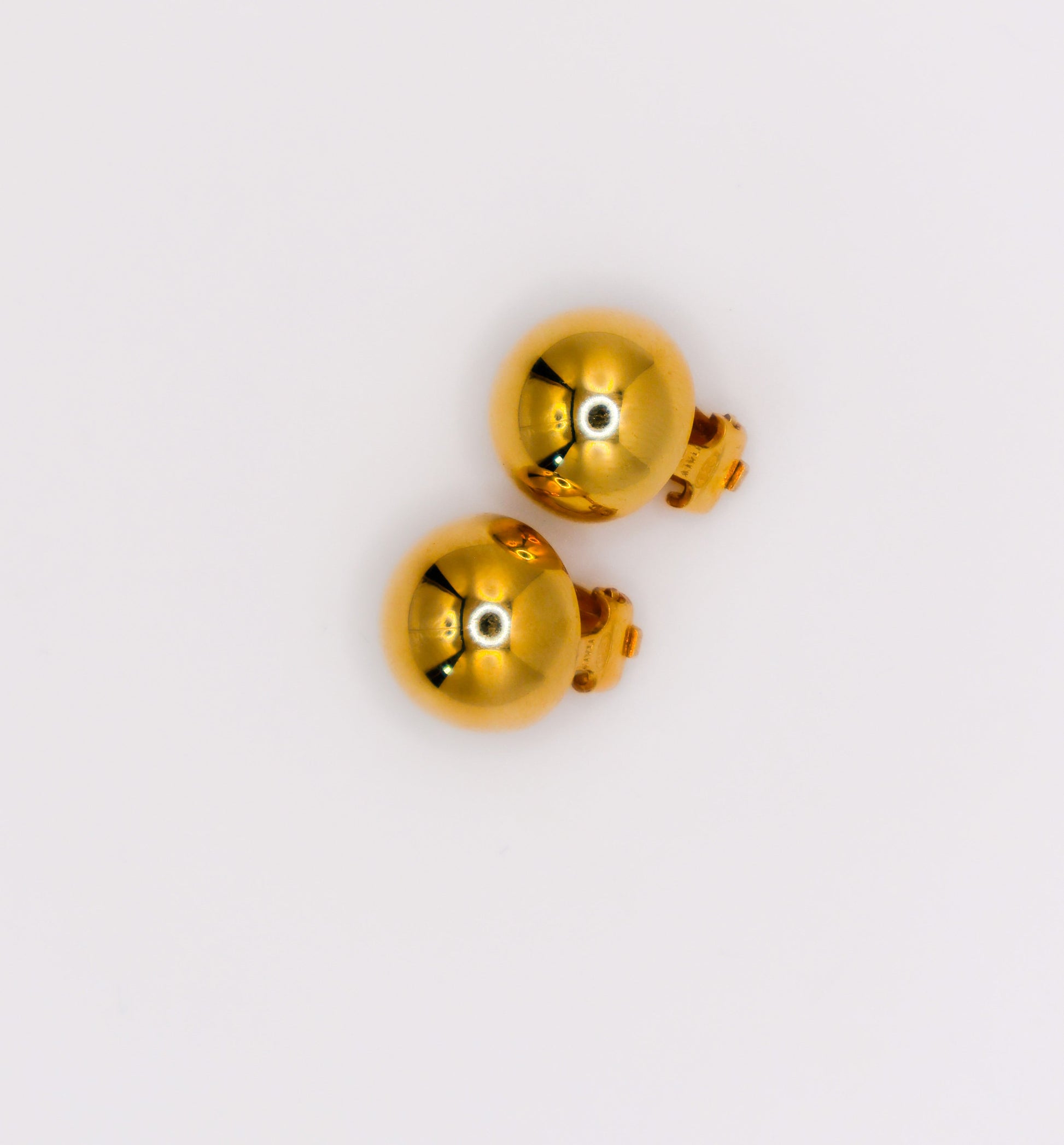Each earring showcases a captivating ball-shaped design that exudes sophistication and style. The base material is premium silver, known for its durability and timeless appeal. These silver spheres are skillfully dipped in 18k gold, adding a touch of opulence to the overall aesthetic.