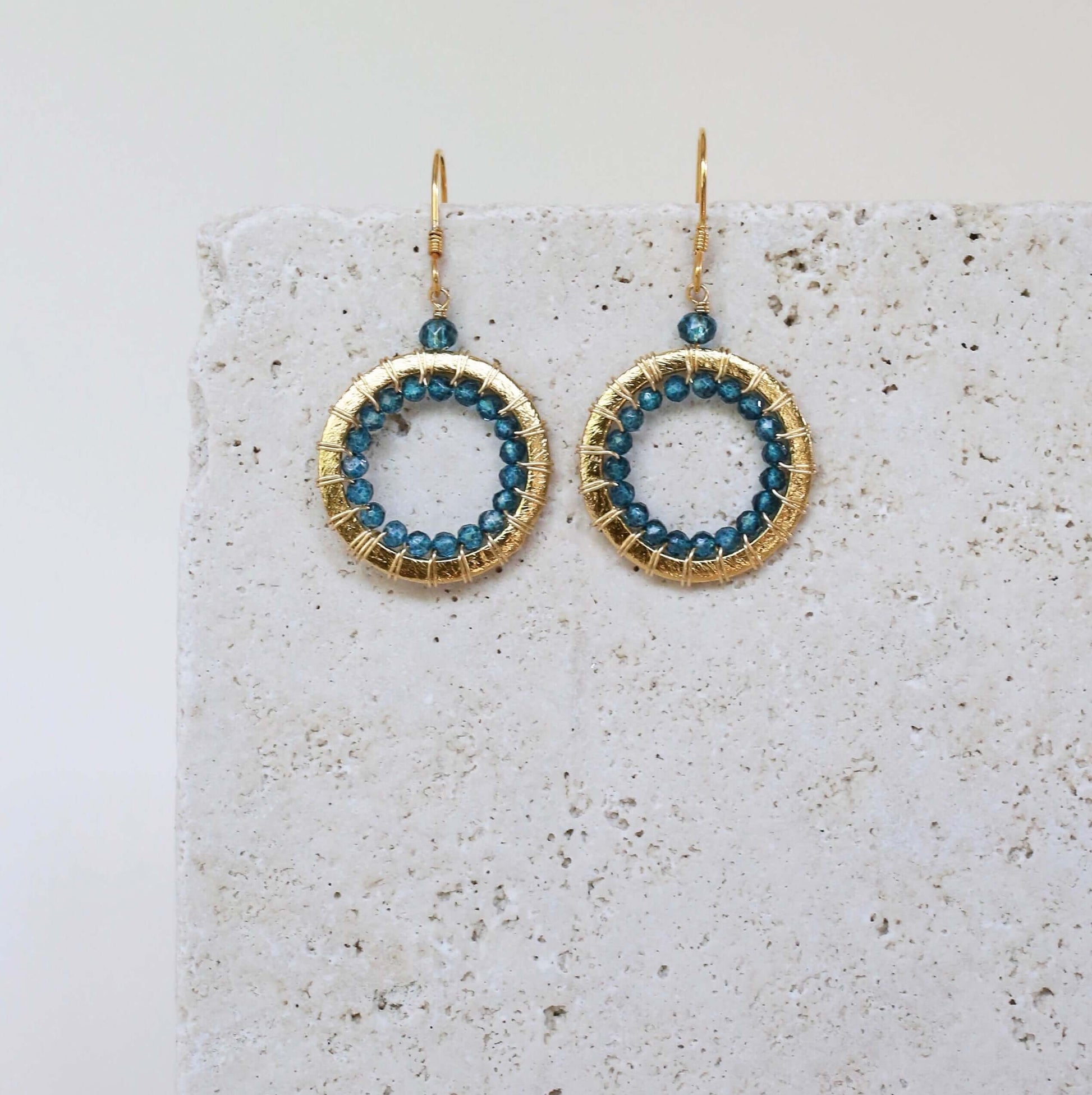 The Halo collection was our very first one. Intended to symbolize the intricate, universal energy woven within us all. These small, sparkling labradorite earrings are ultra lightweight and an eye-catching alternative to a classic gold hoop.