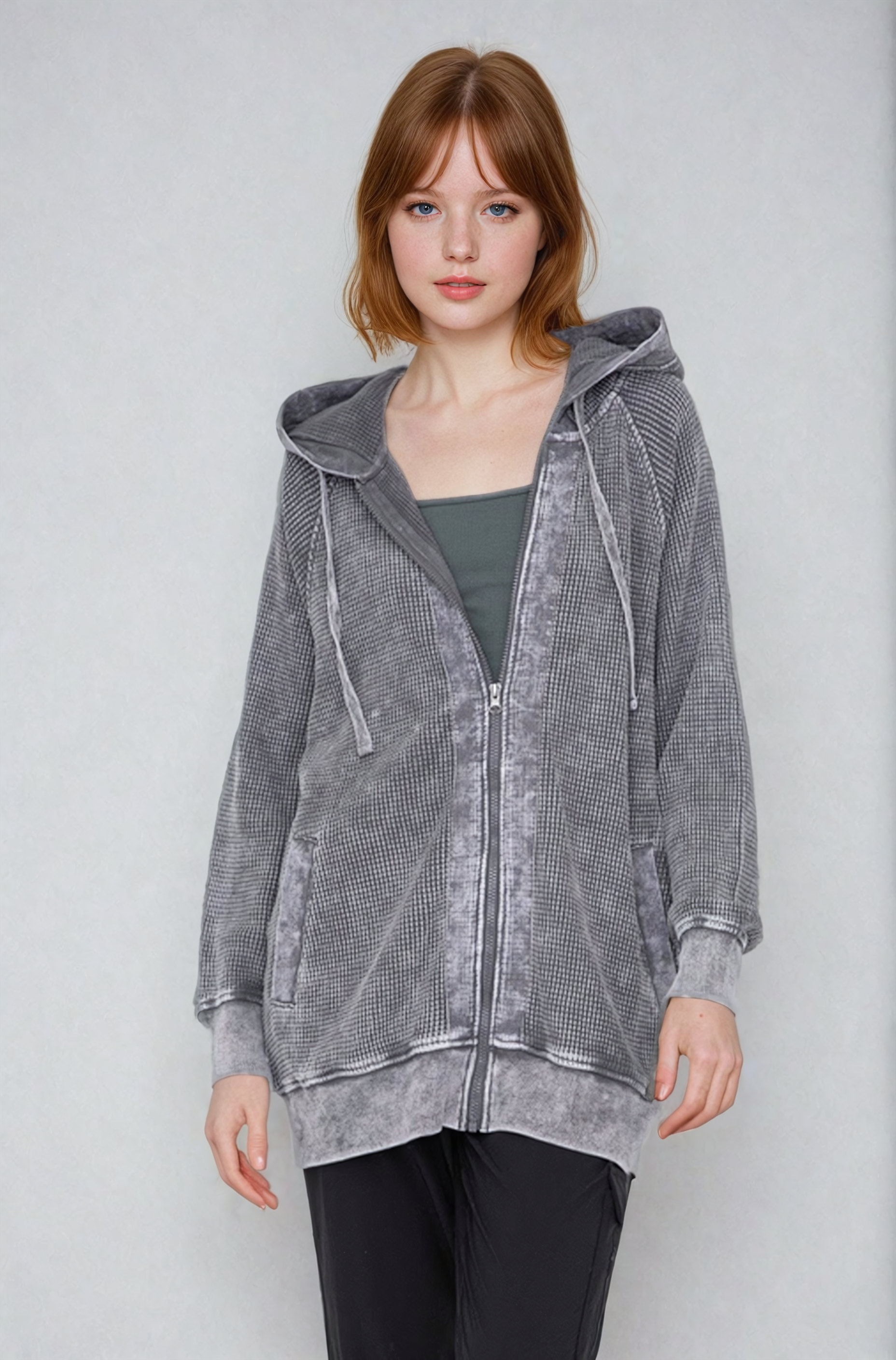 Whether you're running errands, heading to yoga, or simply relaxing at home, the Fitkitty Culture Mystic Mineral Cozy Oversized Waffle Knit Zip-Up Hoodie is the perfect way to stay comfortable and stylish.