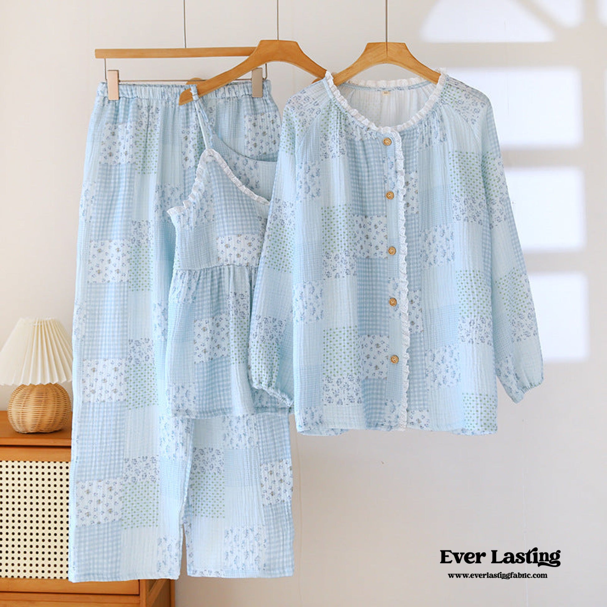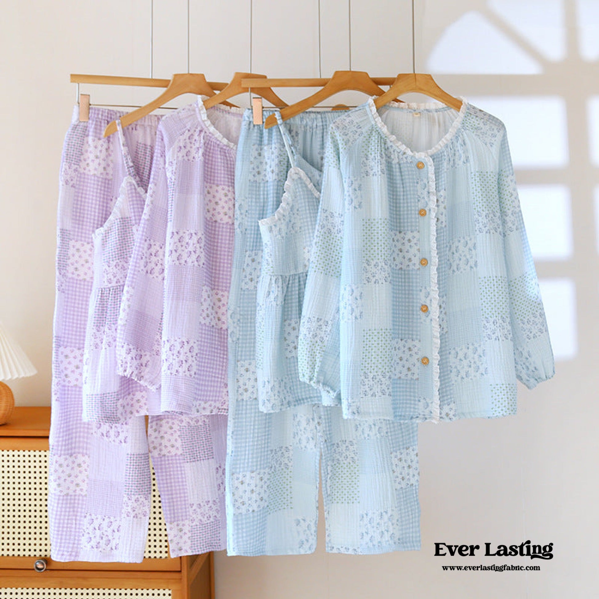 Experience effortless elegance and comfort with Ever Lasting's Refreshing Floral Tank and Long Pants with Cardigan Pajama Set. Crafted from soft, breathable fabric, this charming set features a delicate floral print that exudes a romantic, French-inspired aesthetic. The sleeveless tank offers lightweight comfort, while the matching long pants ensure a cozy fit for year-round wear. Complete with a stylish cardigan, this set adds versatility, making it perfect for lounging in style. Designed for those who love cute yet sophisticated loungewear, this pajama set blends comfort and femininity, elevating your relaxation routine with a touch of floral charm.