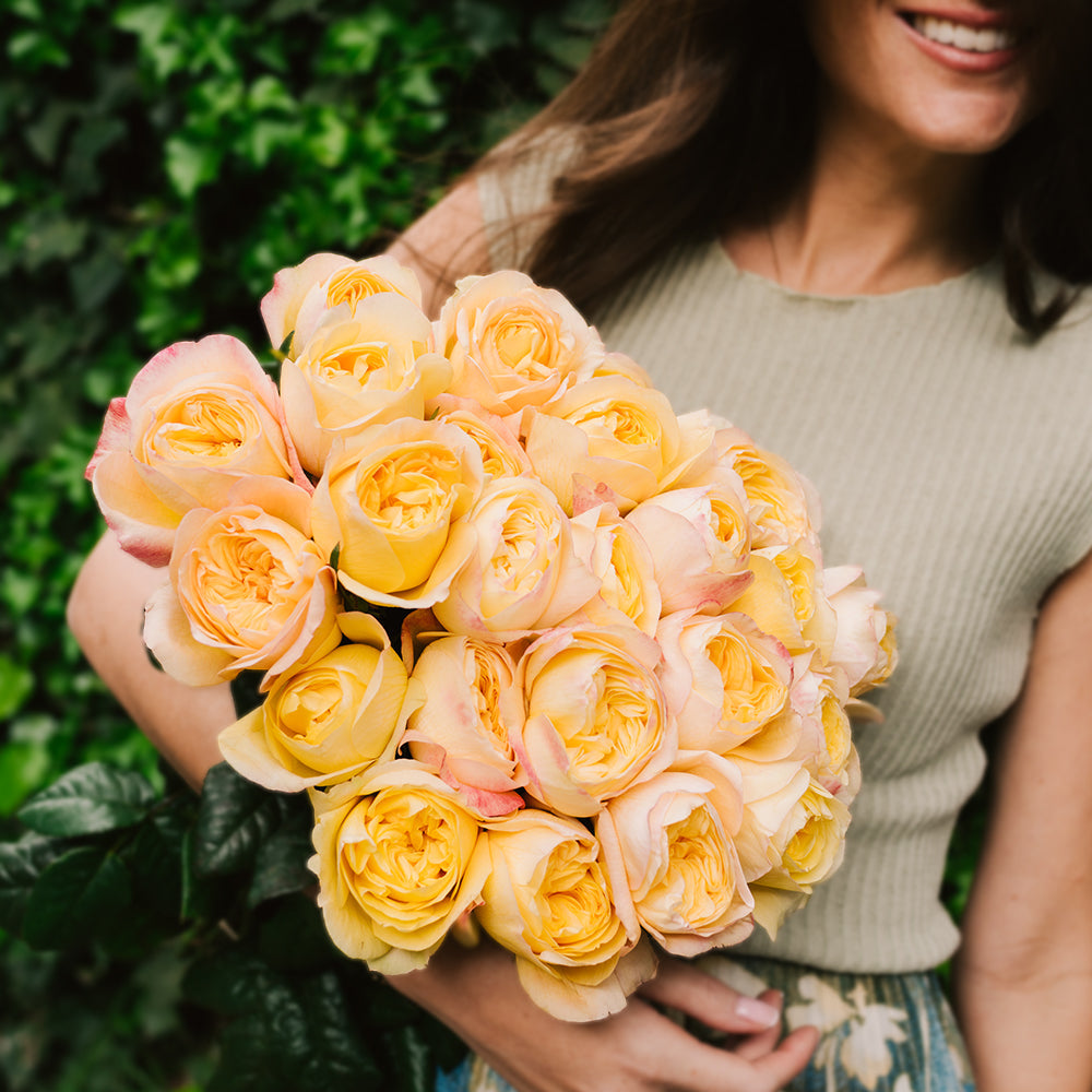 This novelty rose bouquet surpasses Cream Garden in the number of petals per bud, offering a more robust presentation that boosts volume in floral displays. Radiant Drift Garden Rose Bouquet also offers a stronger yellow color, bringing added joy and visual tone to arrangements. Perfect for any occasion!