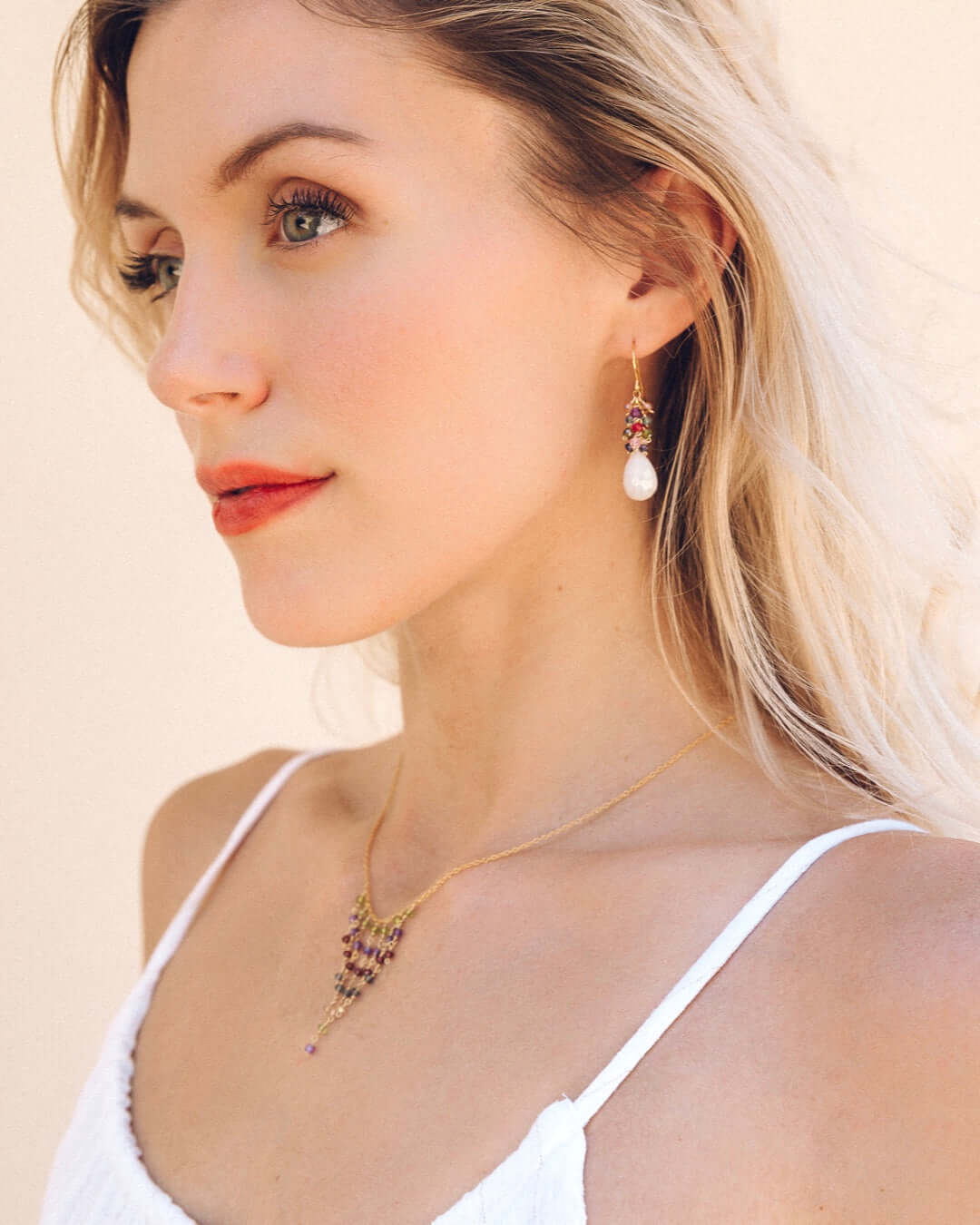 We paired our delicate gemstone fringe necklace with a beautiful gemstone cluster earring. Save 10% when you buy both together.