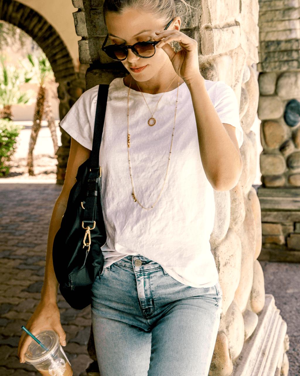 We paired our rose quartz mini circle necklace with our long pink tourmaline layering chain. Save 10% when you buy both together.