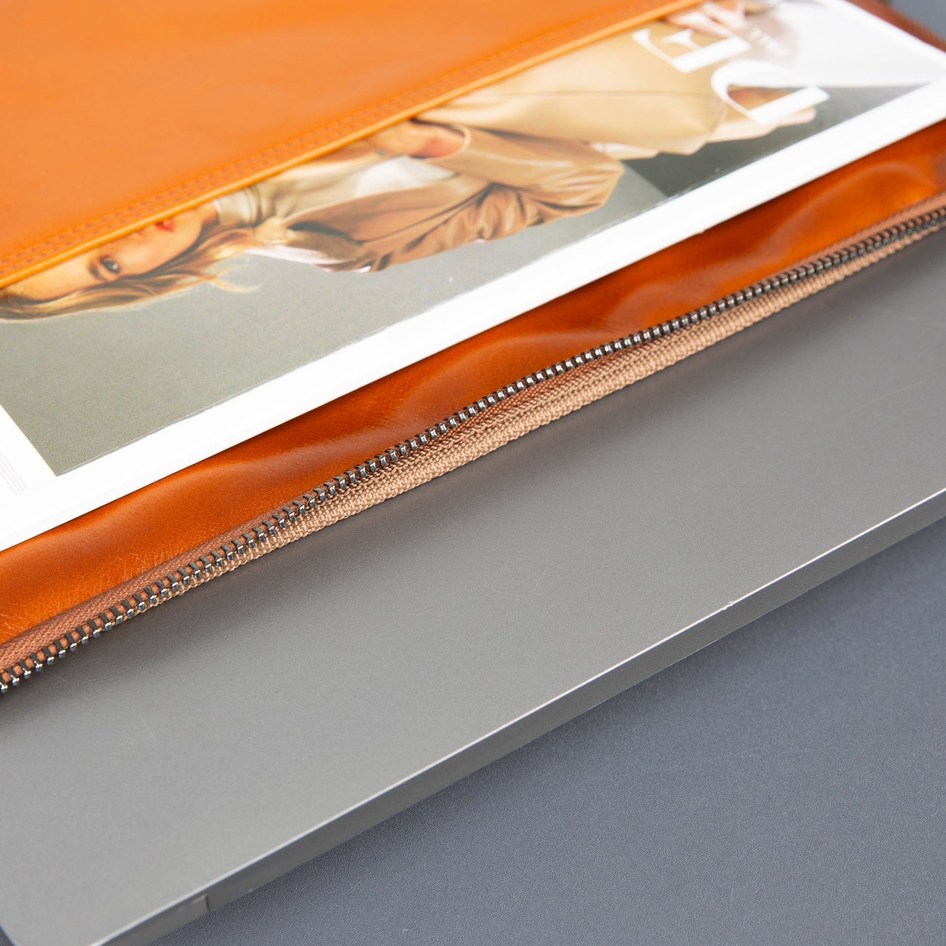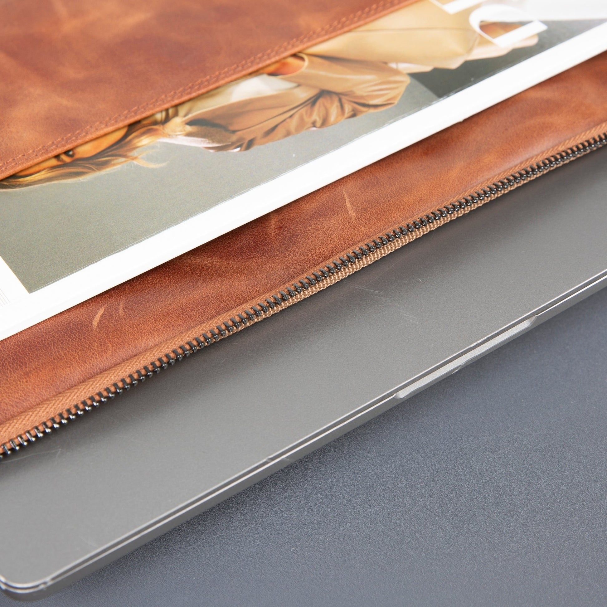 Crafted from high-quality genuine leather with a careful eye for detail, this premium MacBook sleeve offers superior protection and professional style for both men and women. The elegant design seamlessly transitions from boardroom to café, ensuring your laptop stays protected while maintaining a sophisticated appearance that complements your professional image.