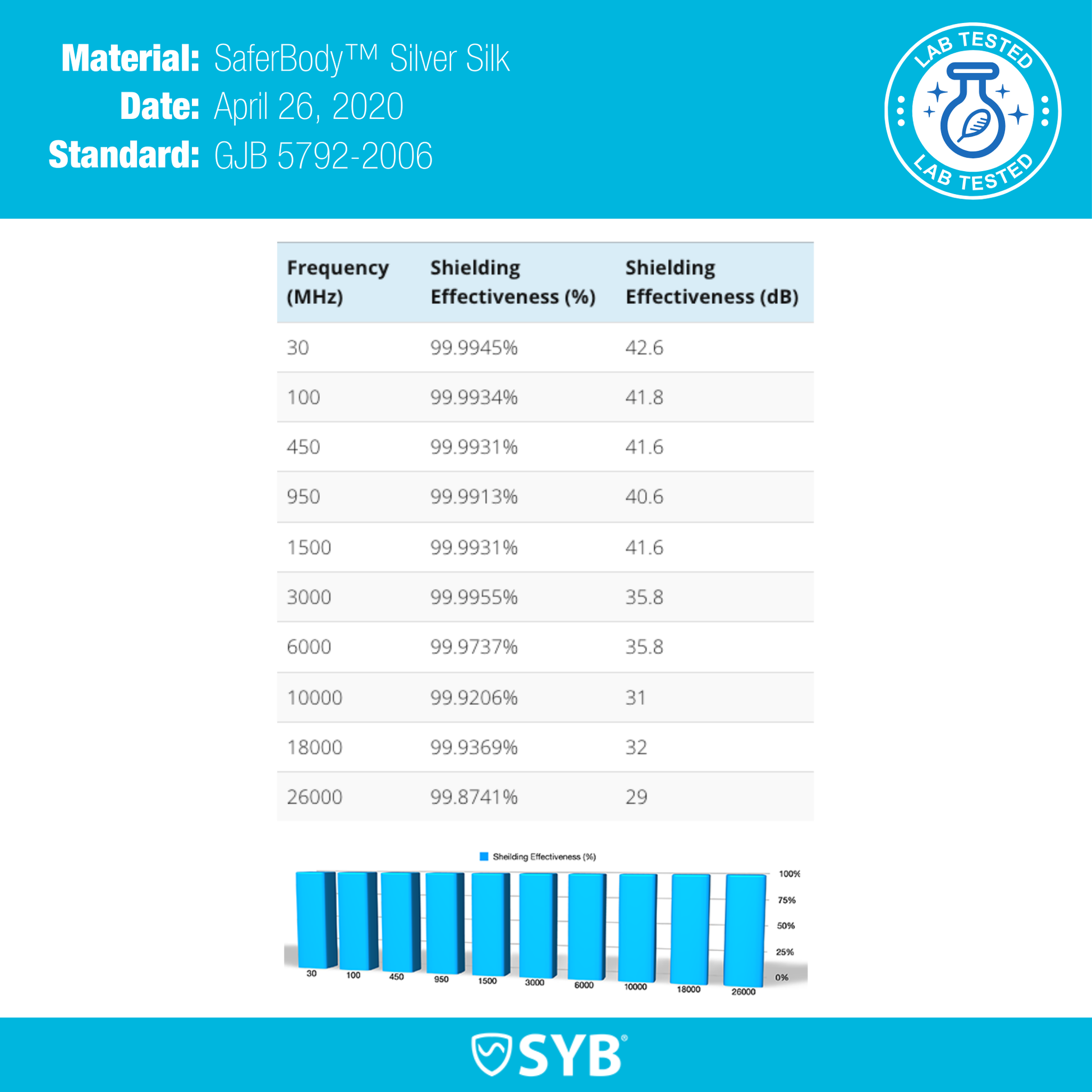 - Laboratory tested for 5G, up to 26 GHz, to Shield Your Body from up to 99% of harmful EMF radiation.