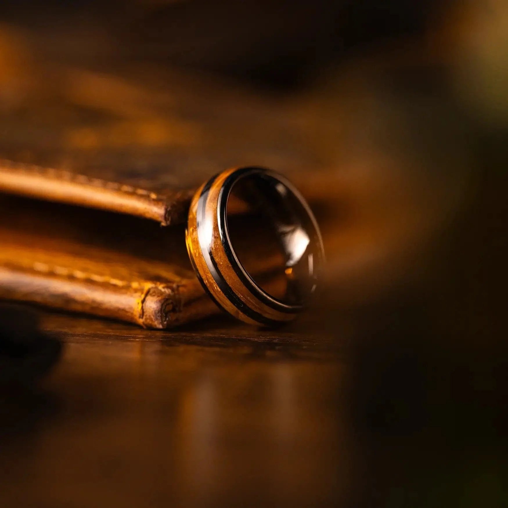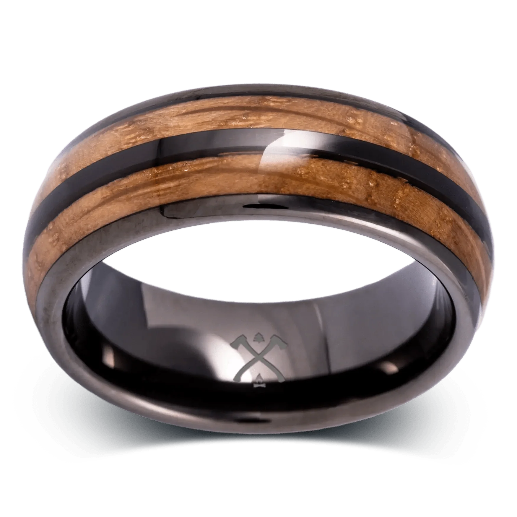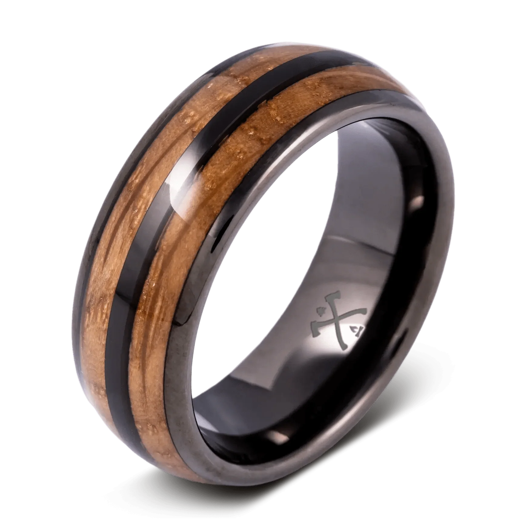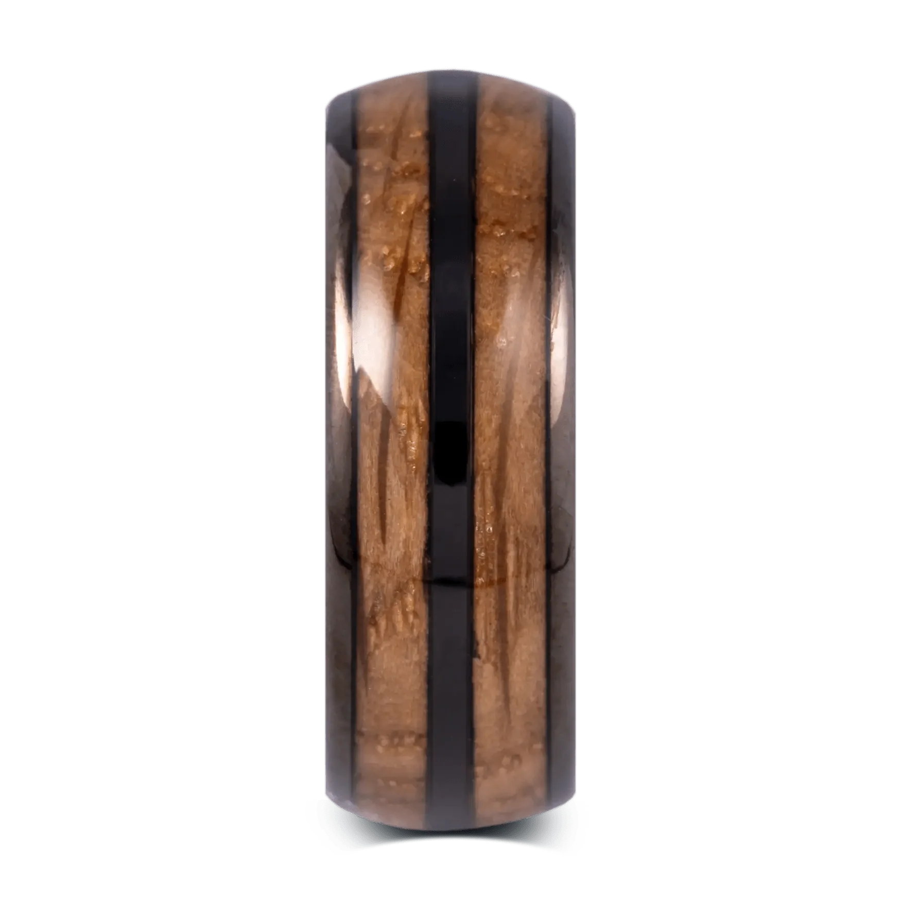 - Black Plated Tungsten with Double Oak Wood Inlays