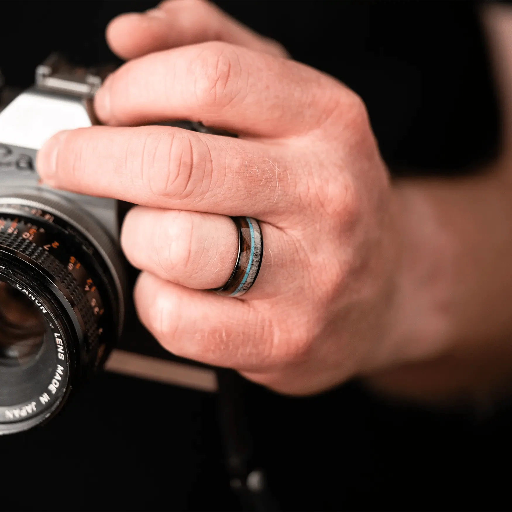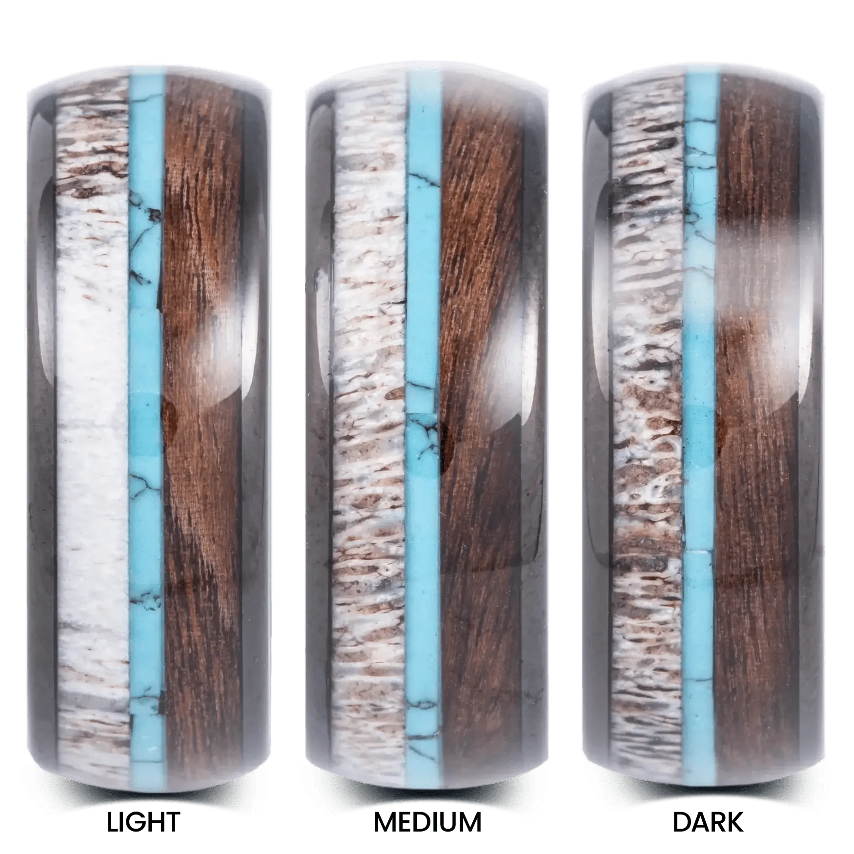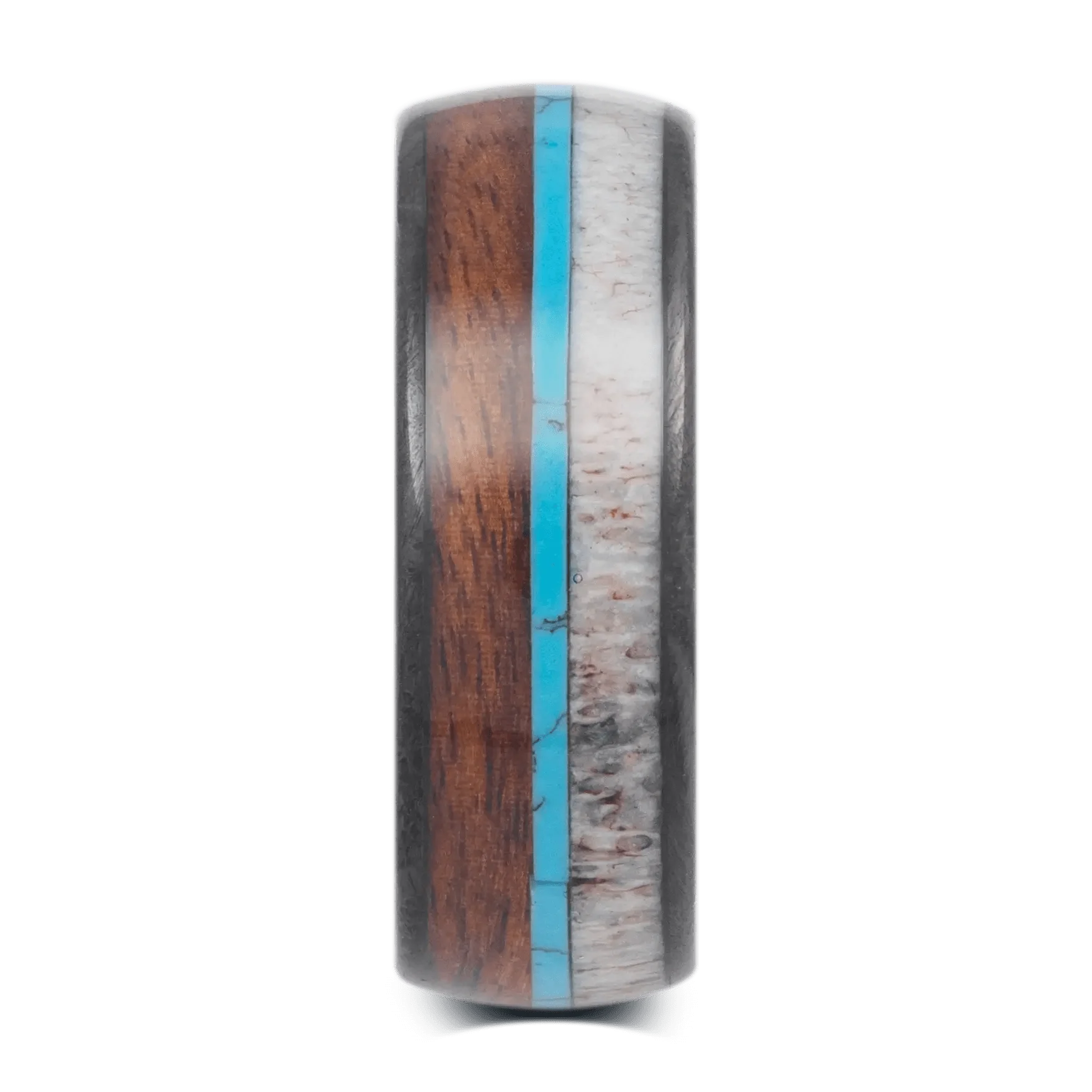 • Black Plated Tungsten with Turquoise, Deer Antler, and Koa Wood Inlays