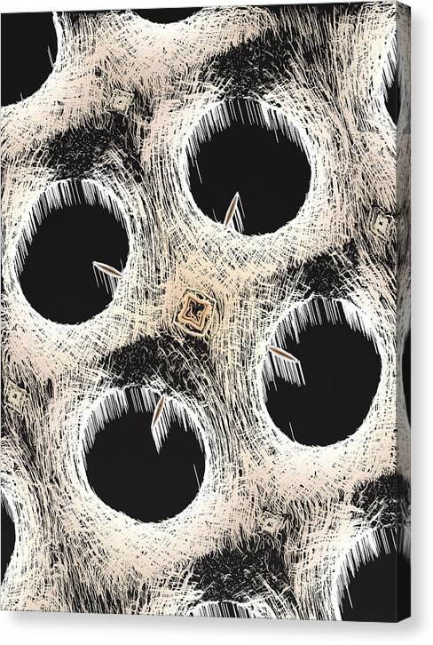 Porous structures dominate the frame, featuring large circular voids with intricate textures. The stark contrast between the dark interior of the holes and the light outer areas creates a dramatic visual effect.
