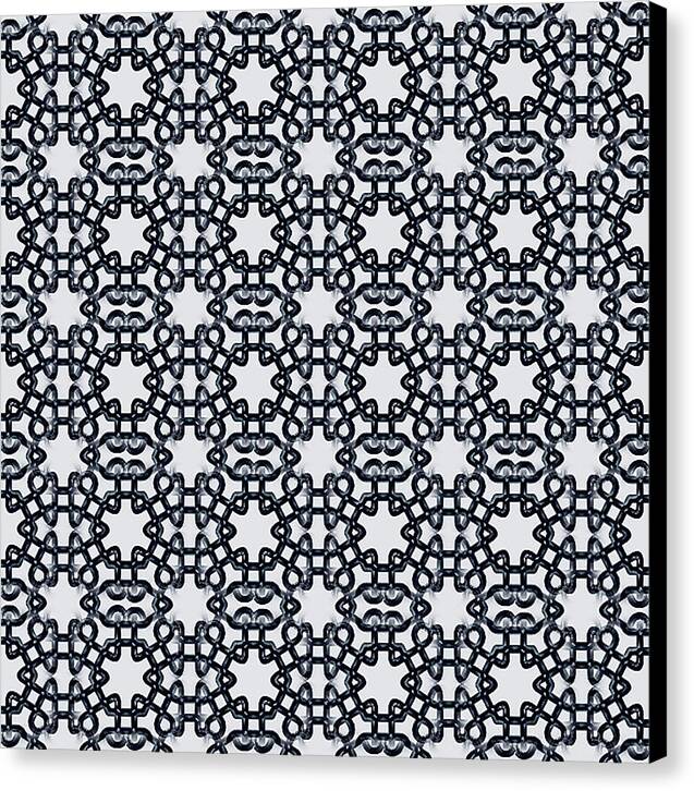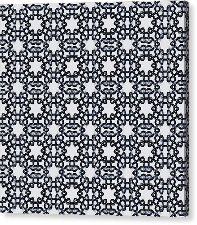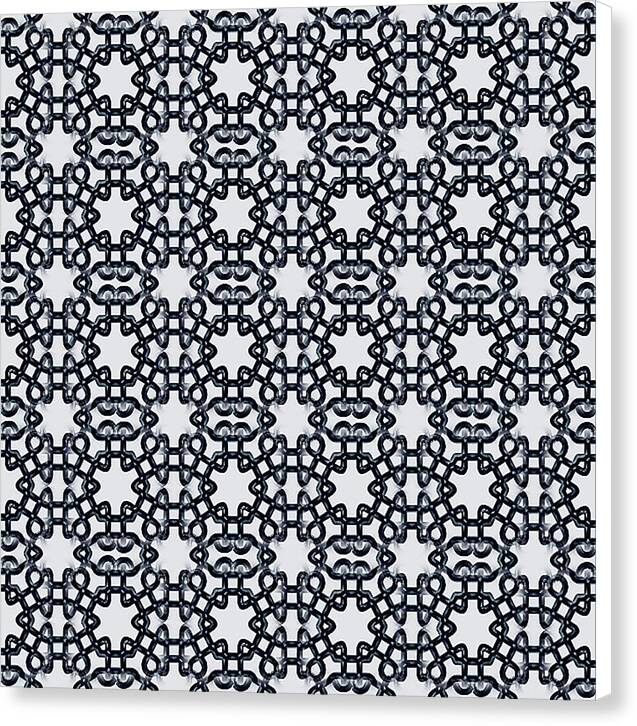Intricate geometric patterns create a symmetrical kaleidoscope effect in this design. The repetition of shapes forms a complex lattice resembling interlocking chains.