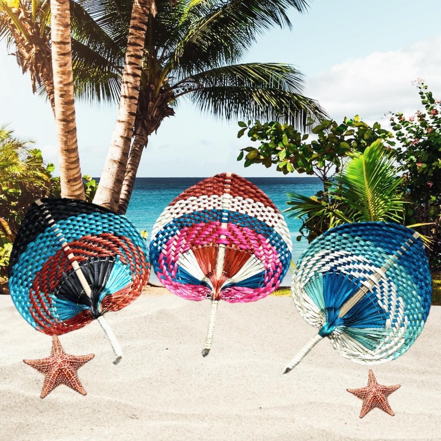 Embrace the summer breeze and elevate your style with this handcrafted raffia fan.