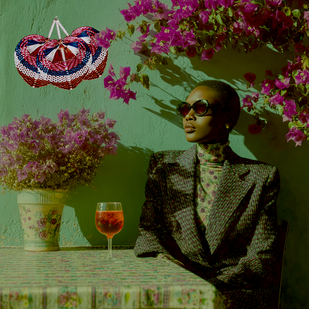 Escape the heat and embrace effortless elegance with this exquisite raffia fan. Meticulously crafted by skilled artisans, this hand fan is a beautiful and functional accessory that will keep you cool and comfortable all summer long, making it a must-have for summer accessories.