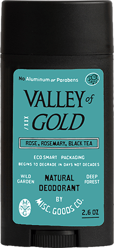 Soft florals, dry herbs, and golden light. Valley of Gold smells like walking through an untamed garden at the edge of summer. Lavender and geranium rise first, grounded by rosemary and a touch of earth. It’s warm, fresh, and quietly floral — a scent that stays close and wears easy. It works with your body instead of masking it — using plant-based ingredients to absorb moisture and neutralize odor naturally.