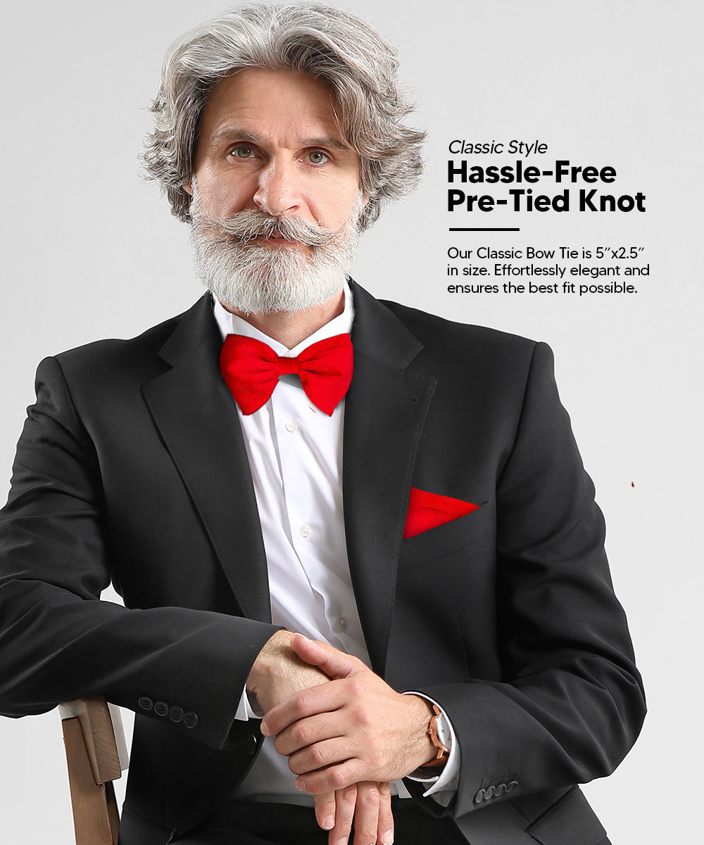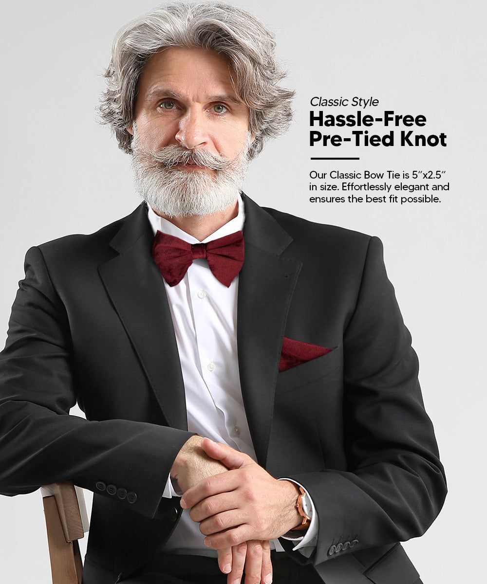 - VARIETY: Our Vibrant Colorful Velvet Edwardian Bow Tie & Pocket Squares come in a variety of designs and colors! Checkout our Ascot, Bow Tie and Necktie designs in our store, we have a style for any event.